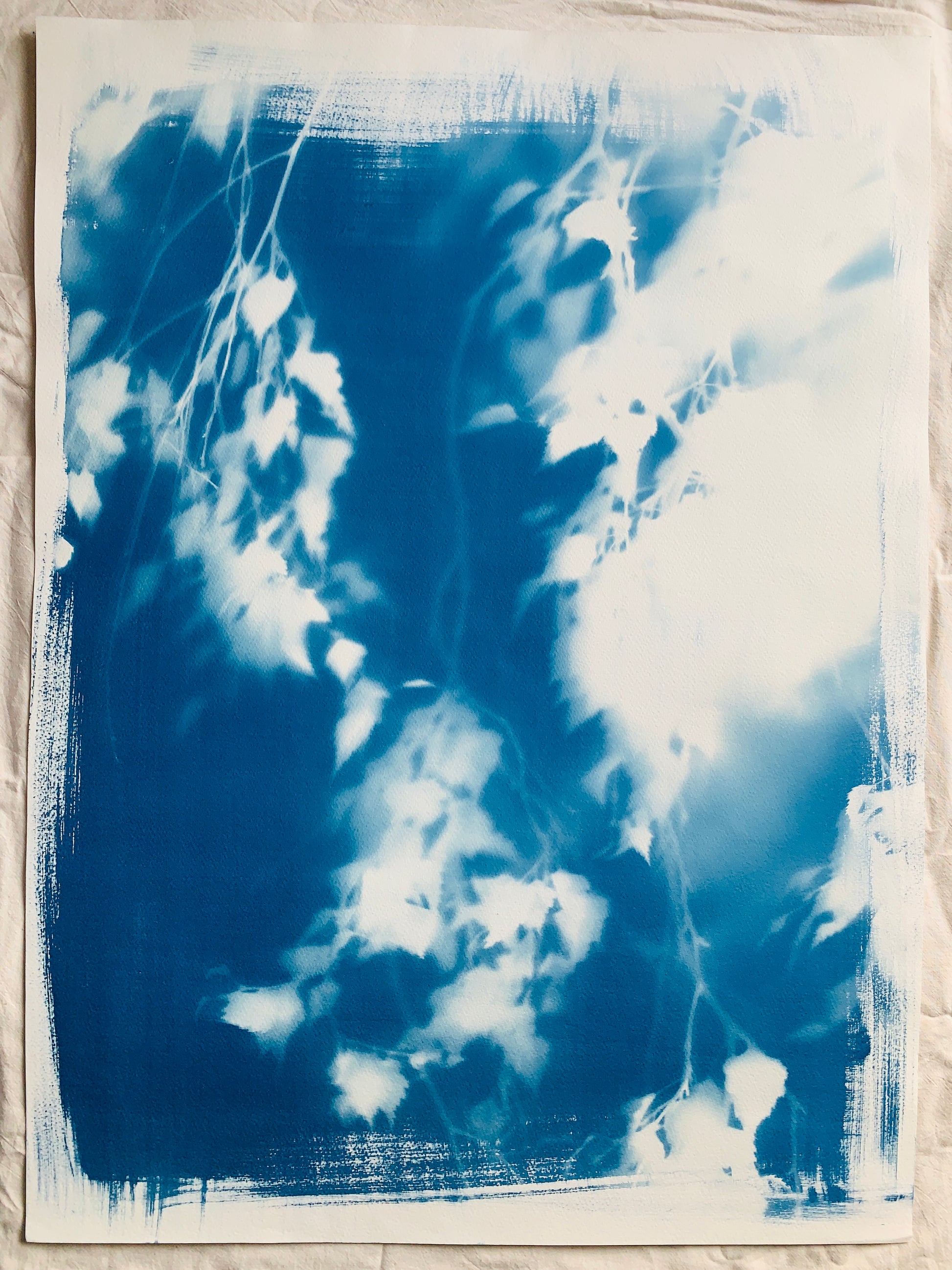 Cyanotype is one of the simplest forms of Photography where chemically treated paper becomes light sensitive, turning a deep Cyan Blue colour when exposed. Danielle has been creating Cyanotypes for last couple of years experimenting with the process, composition, and also the brush marks and shapes that are created when coating the paper that's going to be exposed.