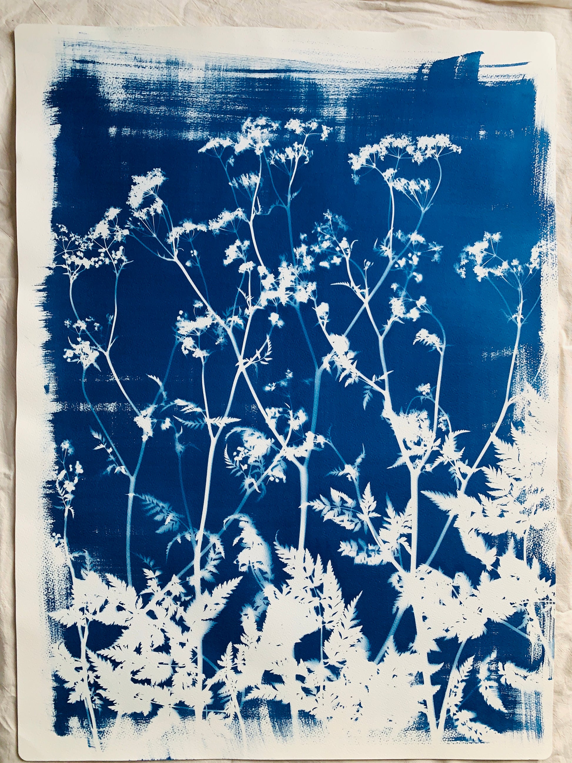 Original Cyanotype print of fresh Cow Parsley grown in Danielle's garden