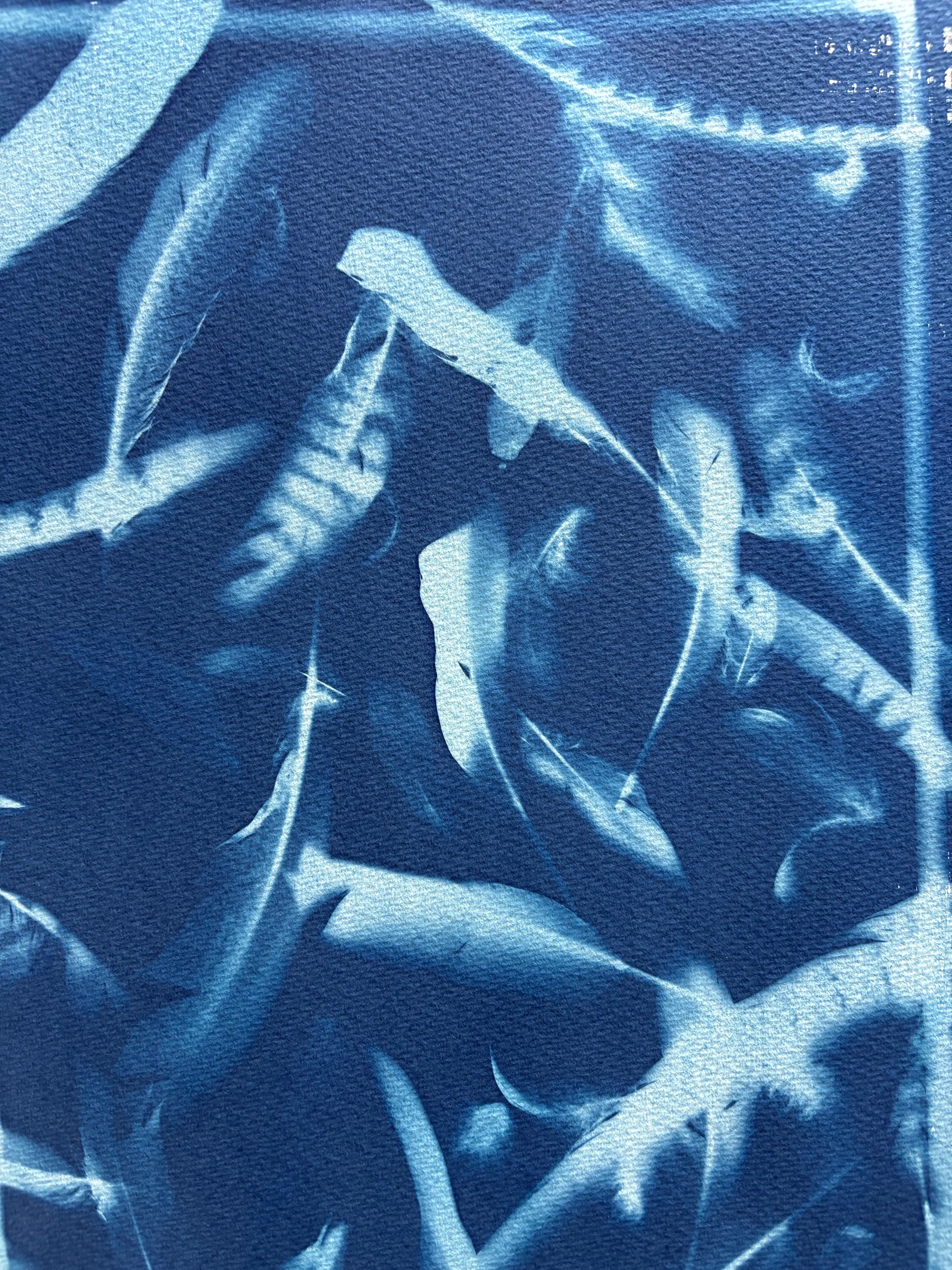 Cyanotype is one of the simplest forms of Photography where chemically treated paper becomes light sensitive, turning a deep Cyan Blue colour when exposed. Danielle has been creating Cyanotypes for last couple of years experimenting with the process, composition, and also the brush marks and shapes that are created when coating the paper that's going to be exposed.