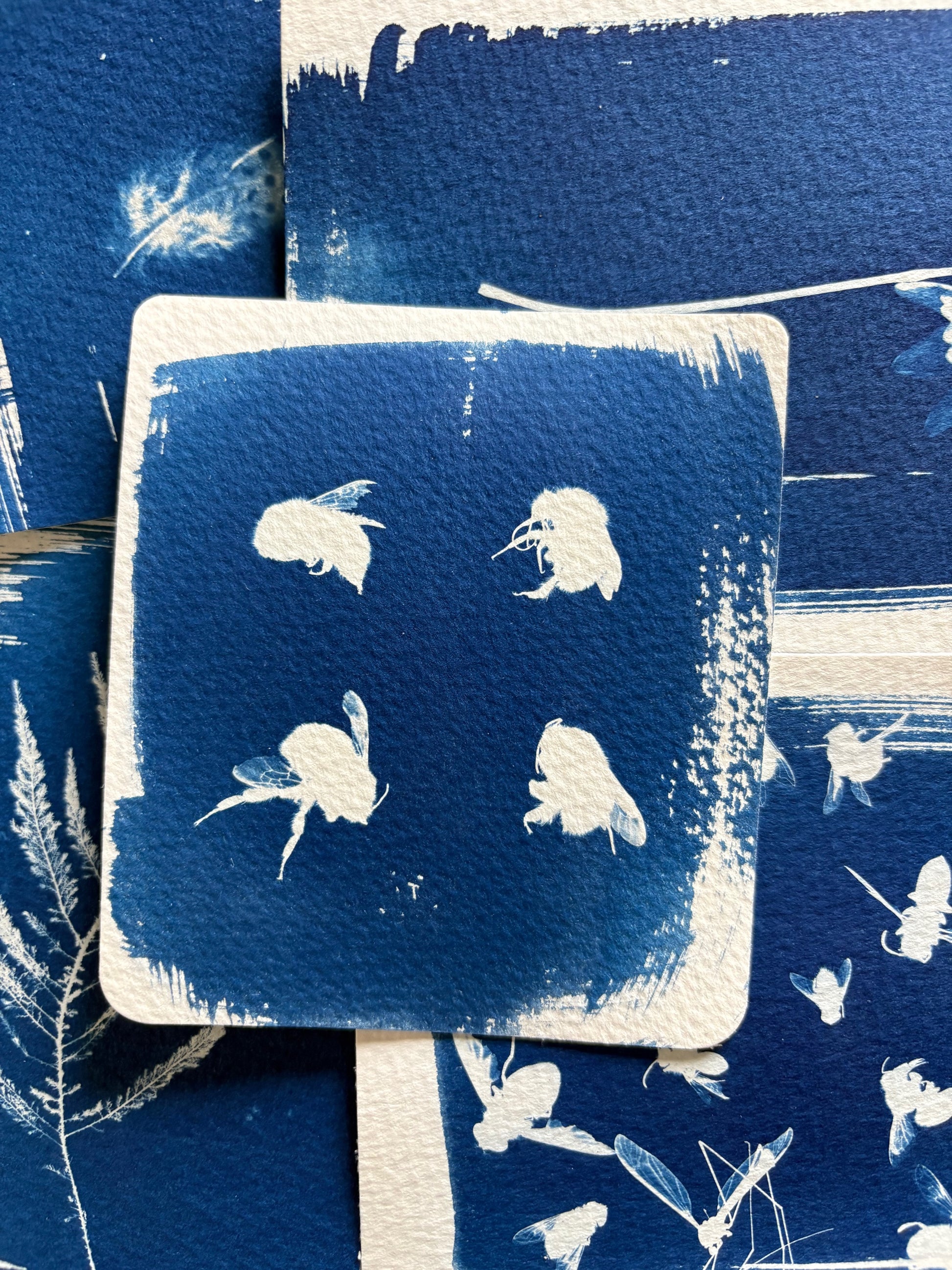 Cyanotype is one of the simplest forms of Photography where chemically treated paper becomes light sensitive, turning a deep Cyan Blue colour when exposed. Danielle has been creating Cyanotypes for last couple of years experimenting with the process, composition, and also the brush marks and shapes that are created when coating the paper that's going to be exposed.