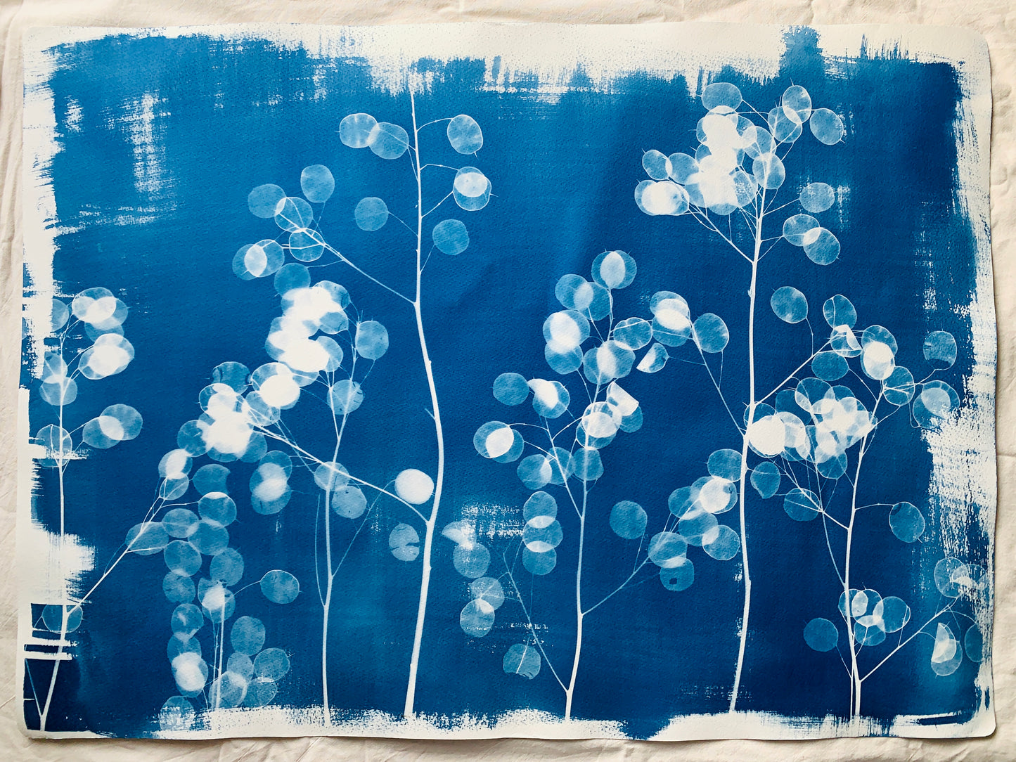 Original Cyanotype print of dried Honesty stems grown in Danielle's Garden