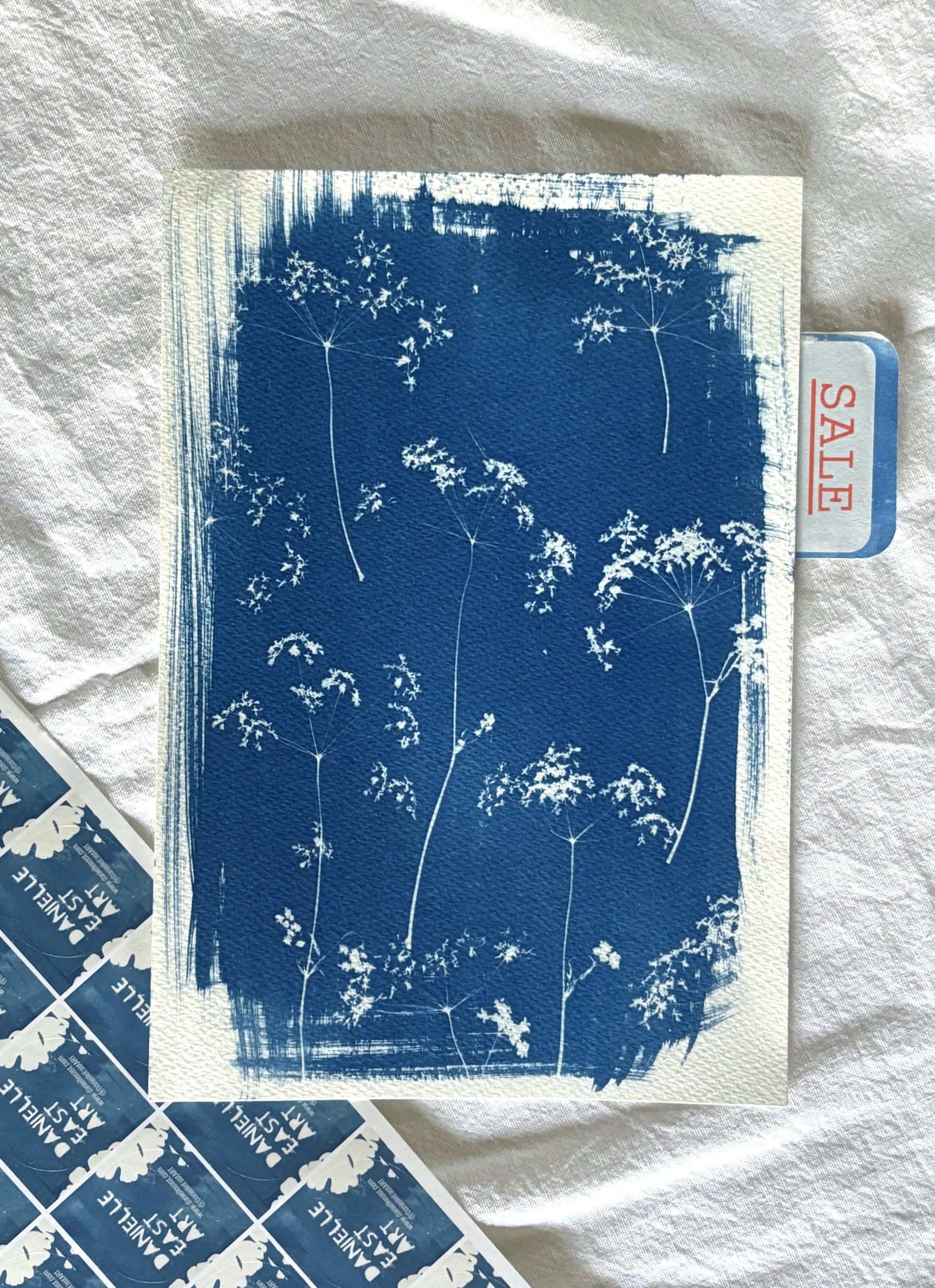 Cyanotype is one of the simplest forms of Photography where chemically treated paper becomes light sensitive, turning a deep Cyan Blue colour when exposed. Danielle has been creating Cyanotypes for last couple of years experimenting with the process, composition, and also the brush marks and shapes that are created when coating the paper that's going to be exposed.